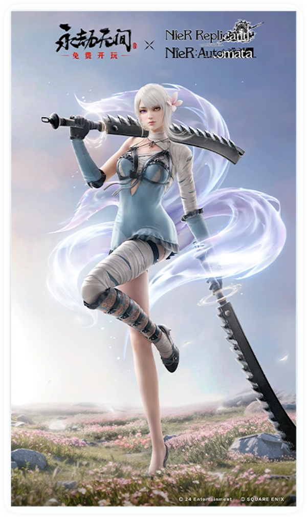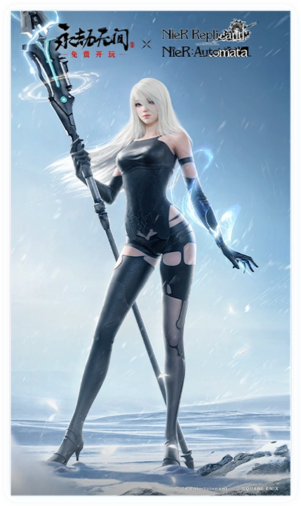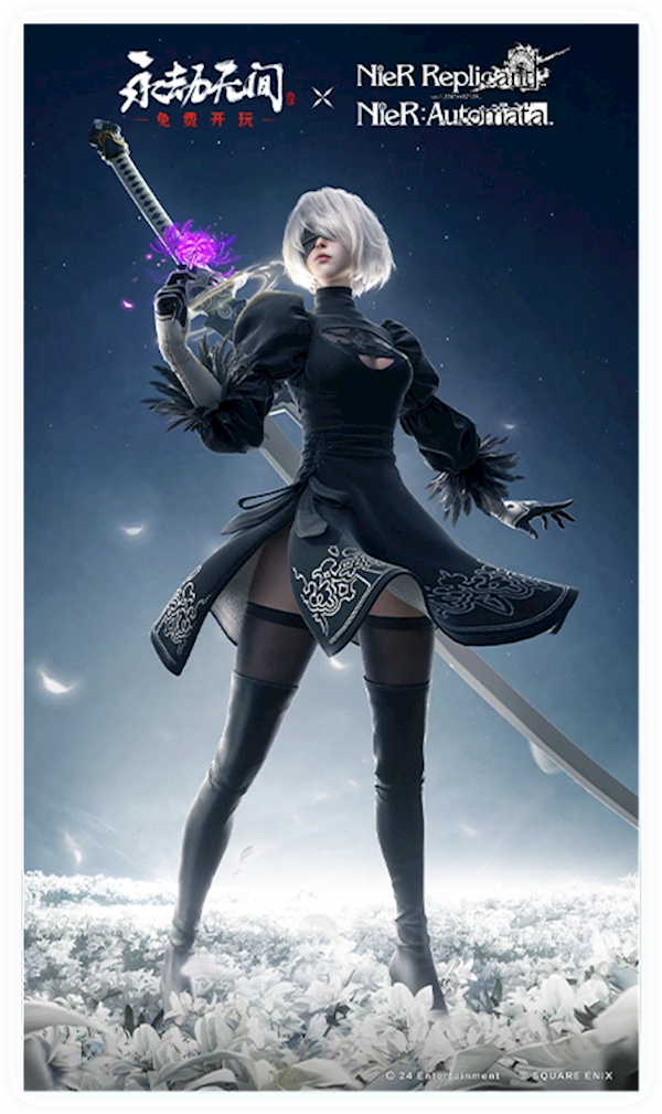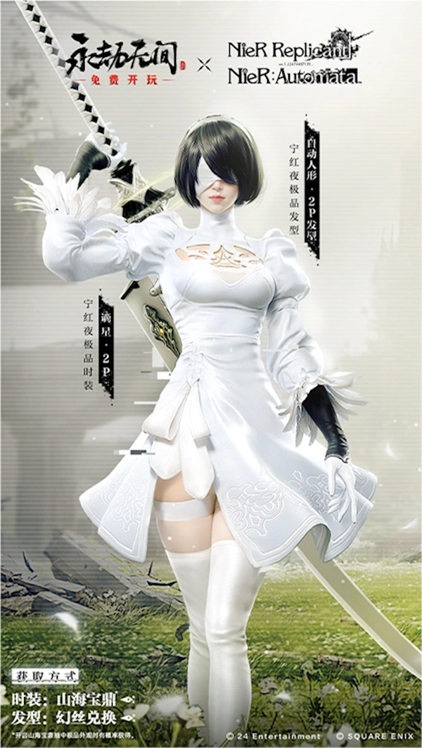 联动内容首先上线了自动人形·2B(宁红夜)、自动人形·9S(无尘),及其对应的武器皮肤自动人形·纯白约定(阔刀)、自动人形·漆黑誓约(太刀)。