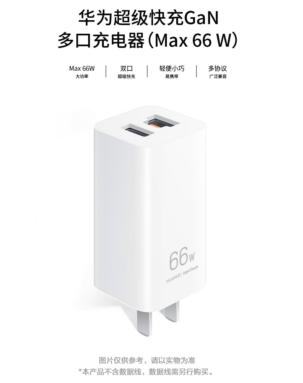 华为 66W 氮化镓充电器上架于 2021 年 7 月 31 日,发售价为 379 元。